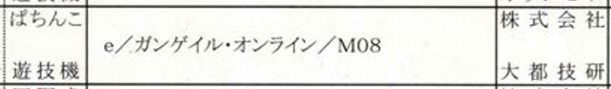 e/ガンゲイル・オンライン/M08ほか/新機種パチンコ+パチスロ検定通過ニュース