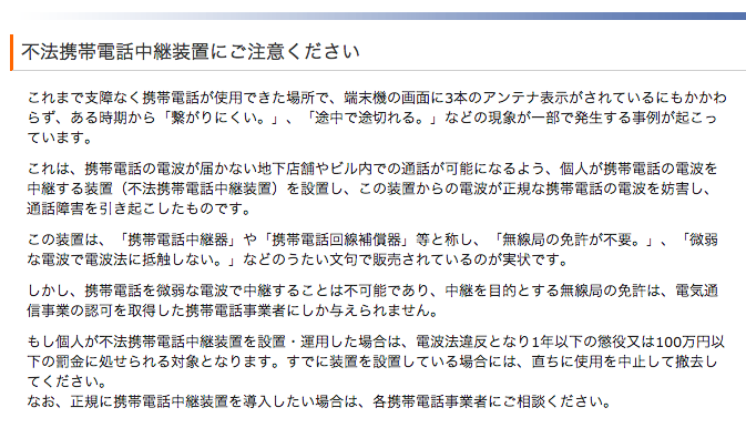 お店に不法携帯電話中継装置ありませんか?総務省