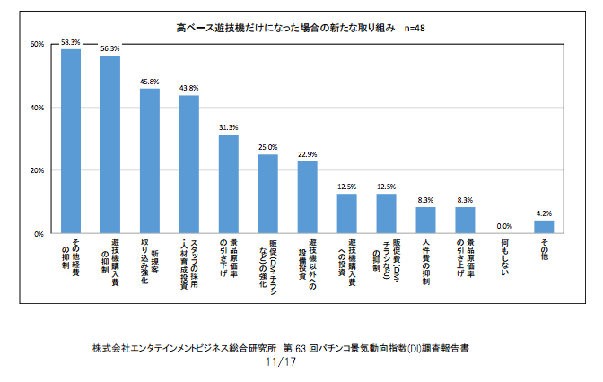 最も高かったのは「その他経費の抑制」(58.3%)で、2 番目に「遊技機購入費の抑制」(56.3%)となった。