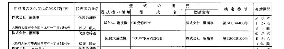 遊技台・検定情報先程のCR呪怨に続いて、検定通過のニュースをもう1本ご紹介でございます。メーカーは同じく藤商事さんから。今度はパチスロが通過確認となりました。機種名は「パチスロRAVE FSE」ですね。以下からご確認くださいませ。