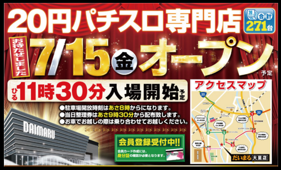 まずは山梨県からDAIMARUさん、スロット専門店のグランドオープンです。