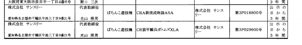 この度「CR装甲騎兵ボトムズXLA」の検定通過が確認できました。メーカーはサミー…さんではなくサンスリーさんからです。以下からご確認くださいませ。