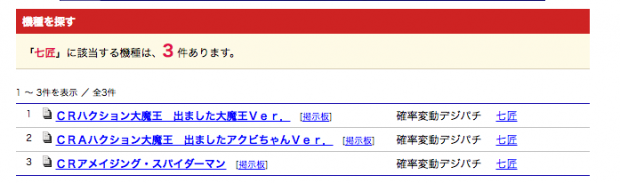 ちなみに七匠さん@パチンコリリースは過去数機種のみ。