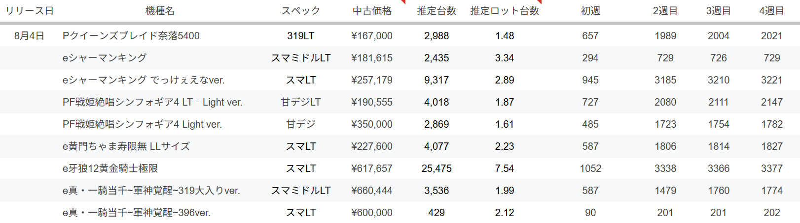 【定点観測】e女神のカフェテラスの推定台数は5,691台/4週目の定点観測出ました