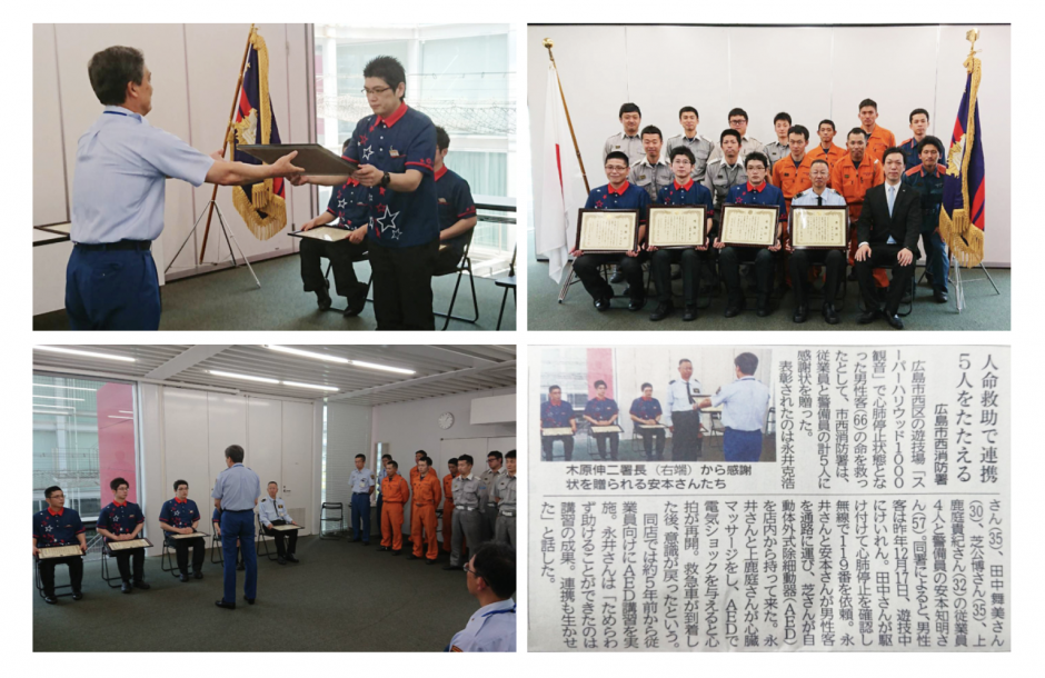 【パチンコホールとAED】人命救助で広島西消防署より感謝状/スーパーハリウッド1000観音