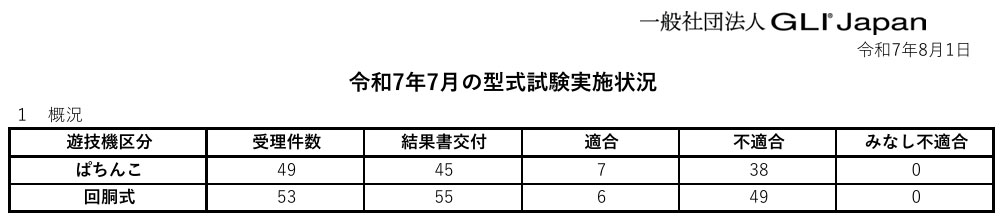 ぱちんこ部門の適合率は15.5%/いわゆる第2保通協GLIさん7月度数値