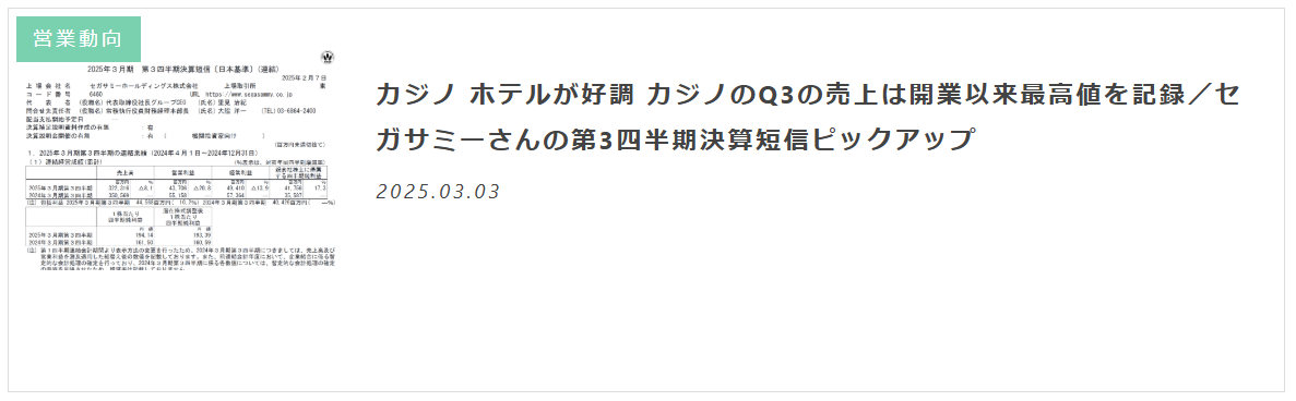 SEGASammyさんの決算短信