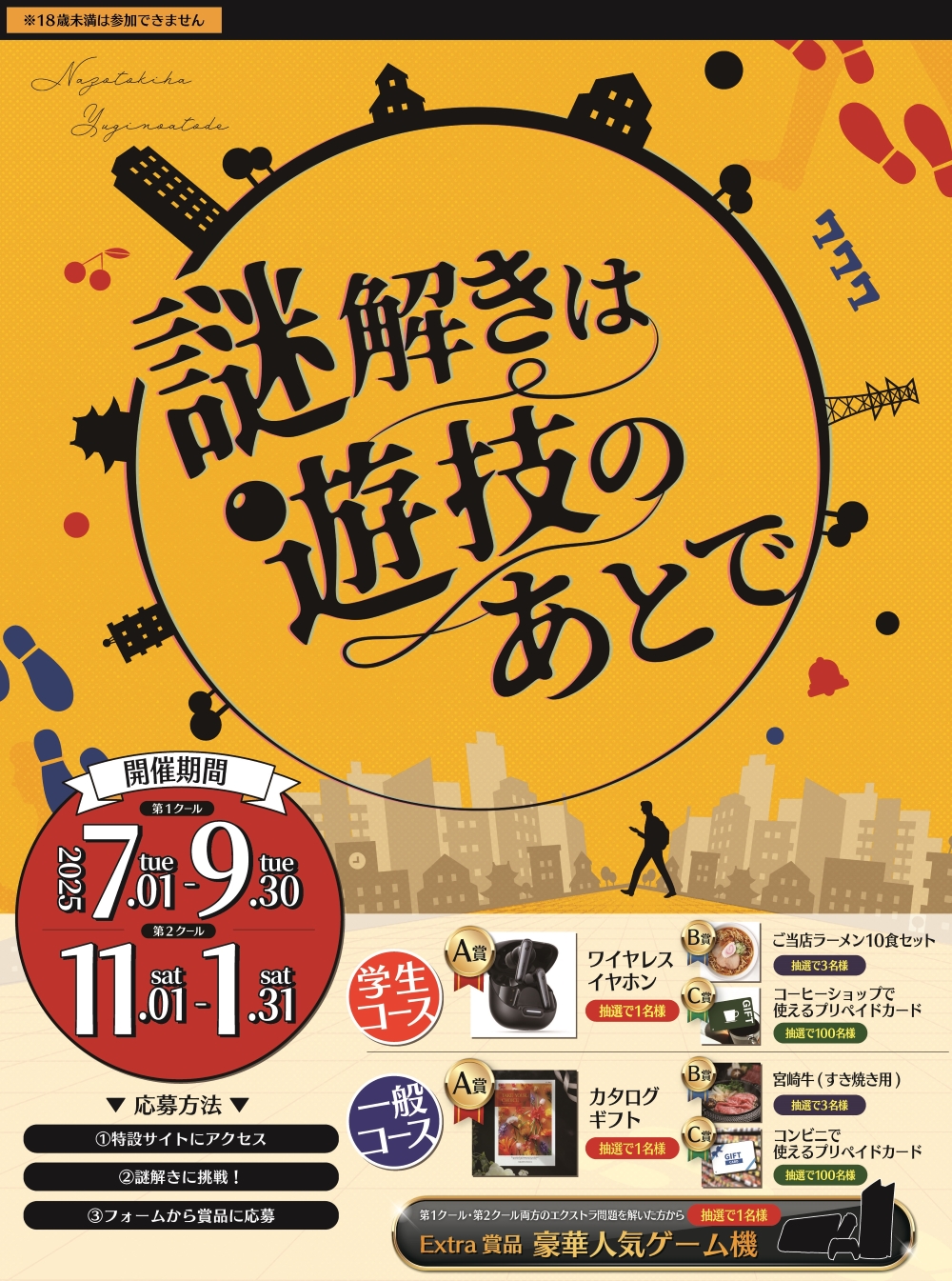 謎解きの正解数に応じて、応募できる賞品が変わります。また、応募コースによっても賞品は異なり、学生のみ応募できる「学生コース」と、どなたでも応募できる「一般コース」がございます。