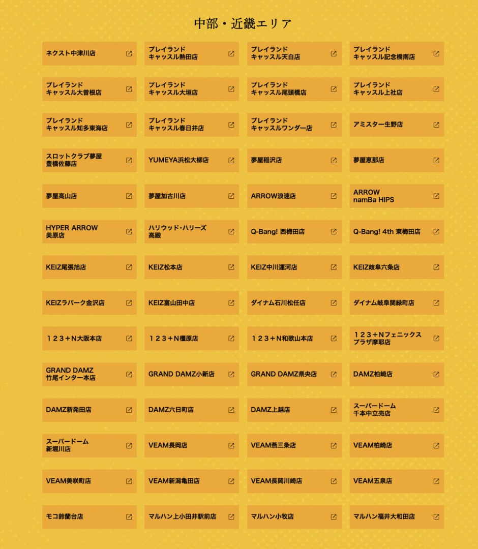 関東・中部・近畿と幅広く展開しており、近くに対象ホールがある方は気軽に立ち寄れそう。