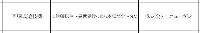 最後にニューギンさんから「無職転生」です。