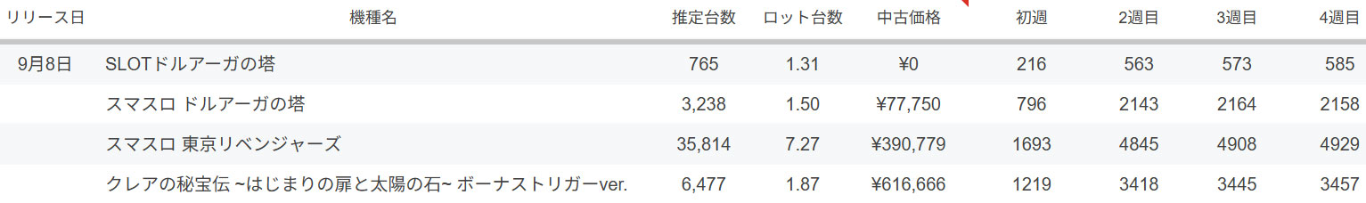 4週目の定点観測「パチンコ・パチスロの推定台数と推定ロット台数」です。