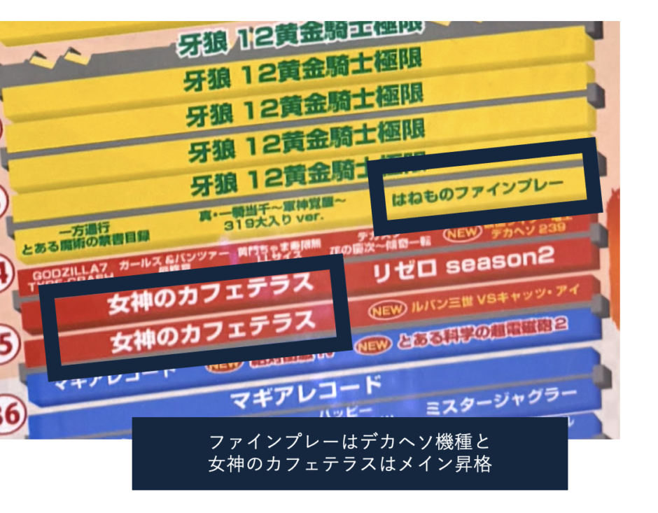 先述GOGO富士山事例でもありましたが(海物語ボックスに羽根モノ)、相乗効果を見越した配置。