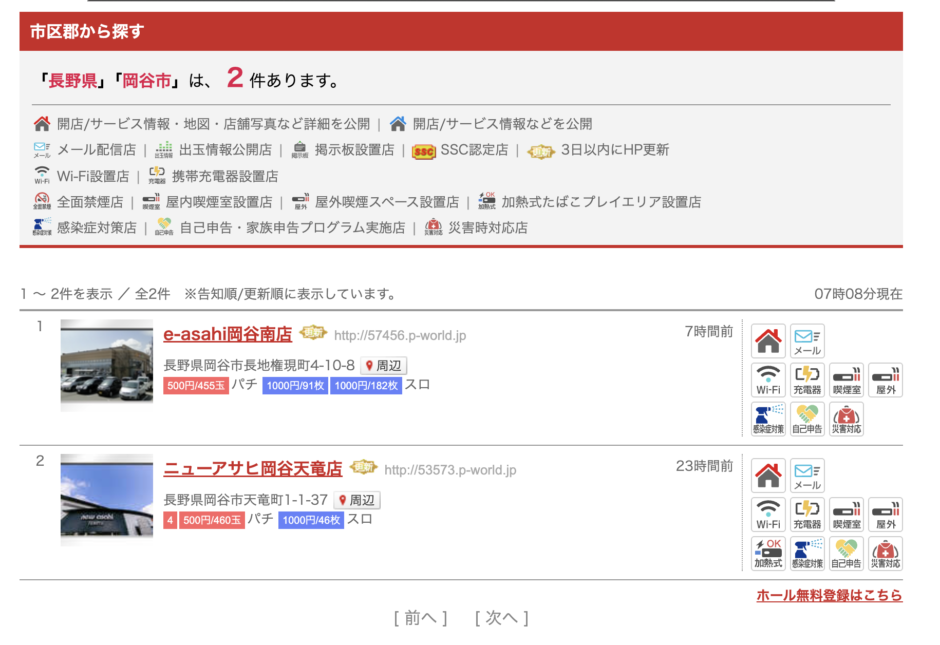 ニューアサヒ下諏訪店(4パチ+1パチ+20スロ+5スロ)320台の小型店舗