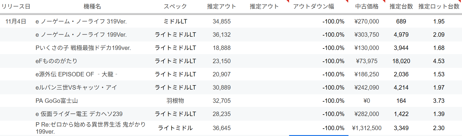 4週目の定点観測「パチンコ・パチスロの推定台数と推定ロット台数」です。