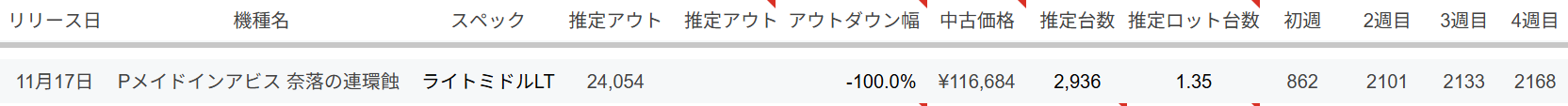 【定点観測】Pメイドインアビス 奈落の連環蝕は約2,936台+スマスロネオプラネットは 6,314台/4週目の定点観測出ました