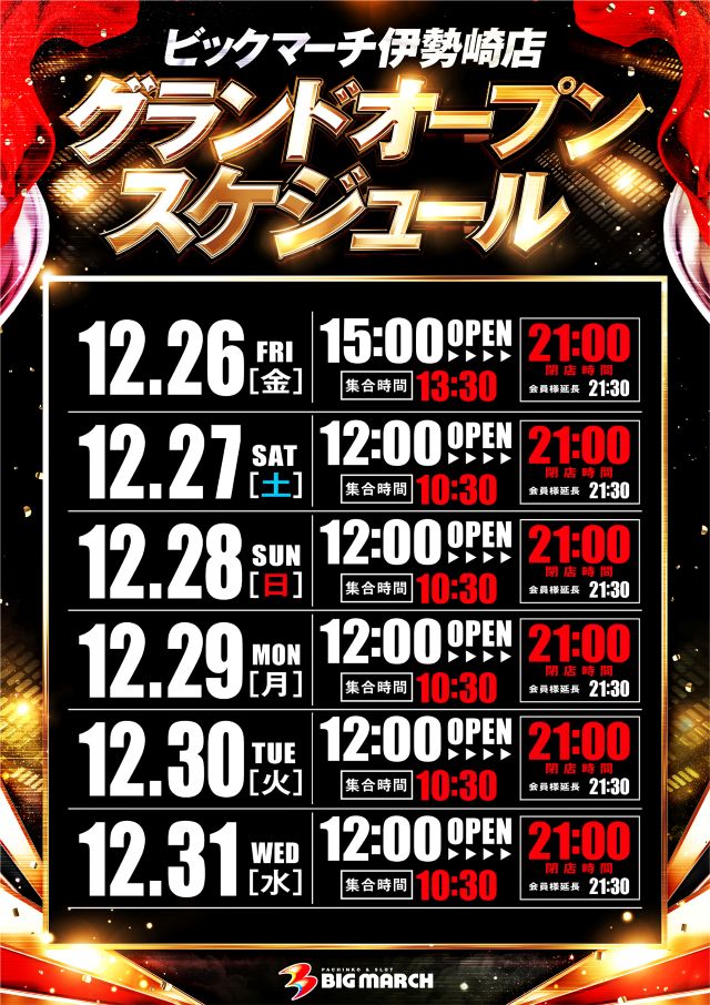 いよいよ年末のグランドオープンスタートですね。