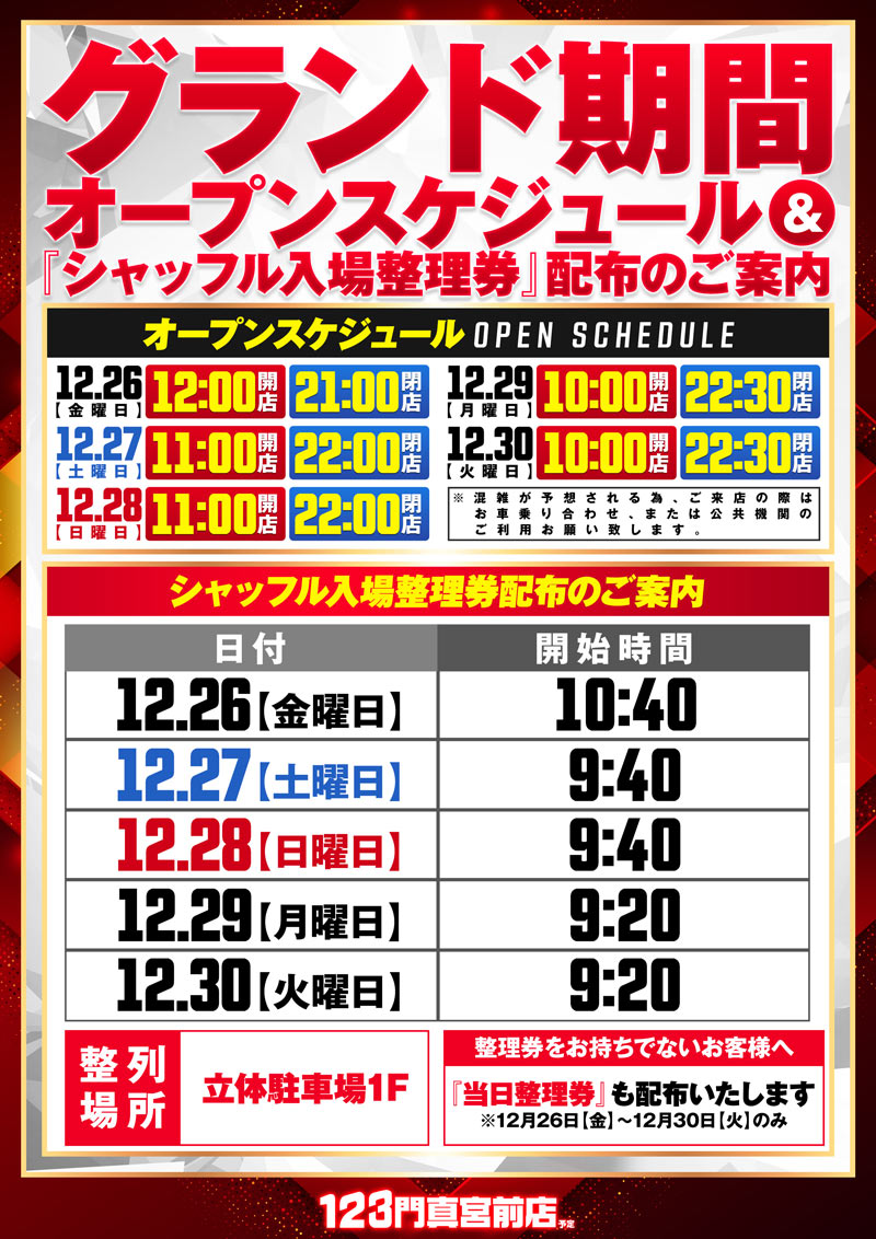 いよいよ出ました今年の年末グランドオープン情報 その1
