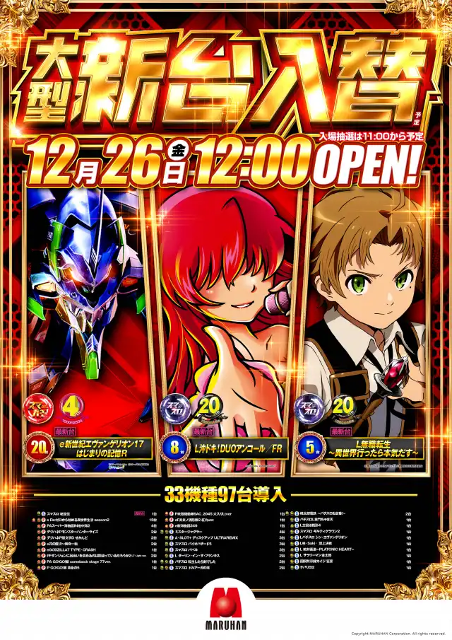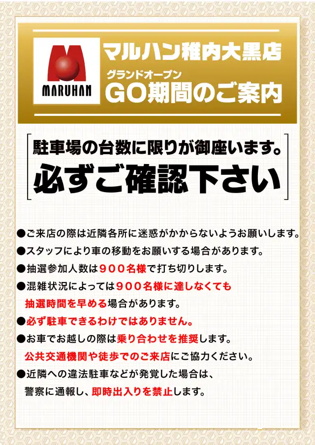 ※抽選参加券は配りません。#マルハン #グランドオープン pic.twitter.com/SOgxVC8Pqe— 【12.26G.O】マルハン稚内大黒店@ひのまる (@wakkanaidaikoku) December 19, 2025