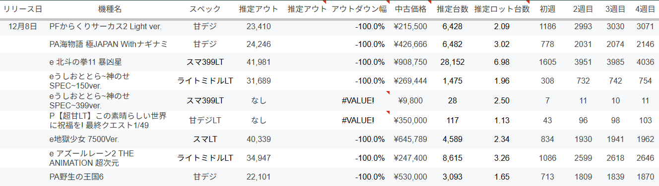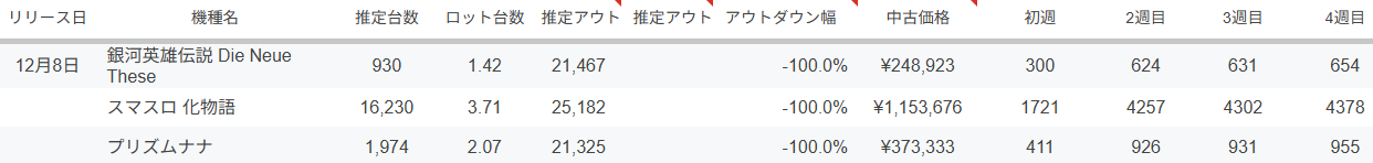 4週目の定点観測「パチンコ・パチスロの推定台数と推定ロット台数」です。