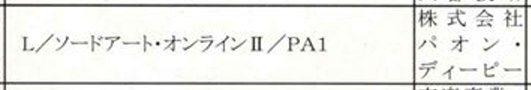 型式名:L/ソードアート・オンラインⅡ/PA1